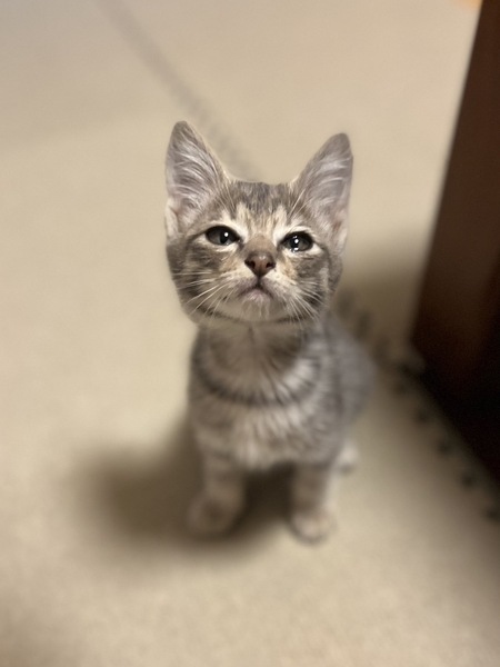 | 特徴(性格など) | グレーがかったキジの男の子です。 人懐っこく甘えじょうずな子です。 食欲旺盛で兄弟と仲良く走り回って遊んでいます。 ◆健康状態 ?音穏(ねおん)くん ?男の子 ?2.5か月 ?ノミダニ駆除済 ?マンソン駆虫済 ?エイズ、白血病陰性 ?ワクチン接種済 |
