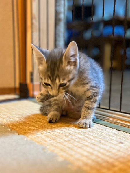 | 里親募集する理由 | 道路にうずくまっていた仔猫の兄弟で溝に潜んでおり、大量のノミと栄養状態が悪いため保護しました。 | ||