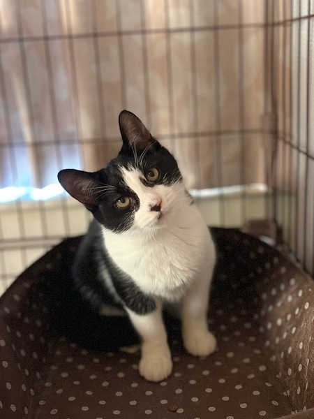 | 特徴(性格など) | 黒白3姉弟の中で一番天真爛漫。預かりさんの家に行ったら、翌日には預かりさんと遊びました。 保護後、獣医さんで1週間預かっていただき、その間は風邪・下痢等皆無で健康です。 |