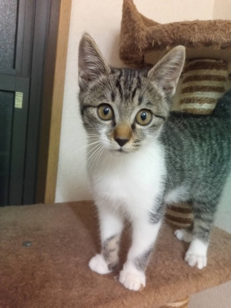 | 特徴(性格など) | 仮名・喜楽(キラ) 人懐っこく、活発です。 2ヶ月の他の子と比較しても、タワーの登り方やジャンプの高さなど優秀です。 人懐っこさも抜群で、預かり宅に来たその日のうちに、膝に乗って、指先を舐めてくれました。 この子と出会うすべての方に喜びと楽しさを与えてくれる子になるように、保護主様がつけてくれたキラちゃんという名前に『喜楽』という字を当てました。 健康状態 良好。 体重 1,010g(10/26測定) ワクチン 1回接種(10/26) 検便、ノミ・ダニ薬塗布済 現在、軟便になっているため整腸剤を飲ませています。 今後の医療措置 避妊手術 |