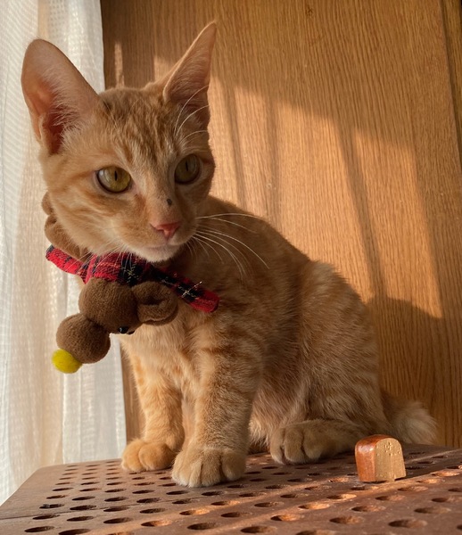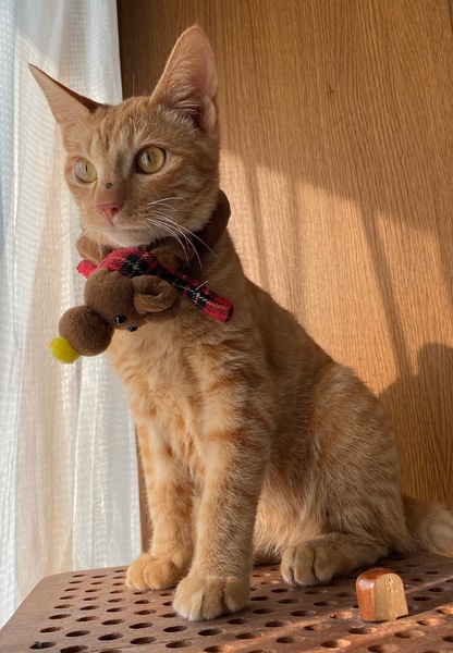 | 特徴(性格など) | ボブテイルがかわいい茶トラの男の子です。 好奇心は旺盛ですが、落ち着いています。 穏やかで優しい雰囲気の子です。 |