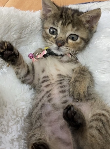 | 特徴(性格など) | ✳︎特徴 4兄妹とも、毛質がちょっとふわふわしています。 柄はキジトラなので、純和猫さんですが少し洋猫さんの血が入っているのかもしれません。 尻尾はほぼまっすぐで、先端が少し曲がっています。 おめめがくりくりで、こんなに赤ちゃんなのに女の子っぽい顔立ちが何とも言えず可愛いです。 頭のてっぺんのところが少し茶色い毛が生えているので、他の兄弟くん達と見分けるポイントです(笑) ✳︎性格 まだ月齢が幼いので、人見知りも場所見知りもない段階です。兄妹一緒に保護されてずっと一緒に生活していますので、センター内でも不安がる様子もなく安心して過ごしております。 赤ちゃん猫さんも、ちょっと大きくなった子猫さんも、食べる事寝る事遊ぶ事が仕事ですが、まだまだ甘えたい盛りでもあります。お膝に乗って来てそのまま寝たり、すぐにくっついて来ます。 とにかくお膝が大好きで、人が座るとすぐに見つけて走ってきます。(その姿がこれまた可愛いのです。) そしてこれから4ヶ月くらいまでの間は、子猫さんの社会性が育つ時期になります。取っ組み合いの喧嘩をしながら、甘噛みを覚えたり、追いかけっこしながら、動体視力を養っていきます。 今は兄妹猫さんをはじめ、他の子猫さんや大人猫さんたちと一緒に過ごしております。 できれば、2頭一緒に迎えてくださるお宅や一緒に遊べる若い先住猫さんがいるお宅、お留守番があまり長くなく猫さんと一緒に遊ぶ時間が十分取れるお宅を優先させていただきたいと考えております。 どうぞ、よろしくお願いいたします。 |