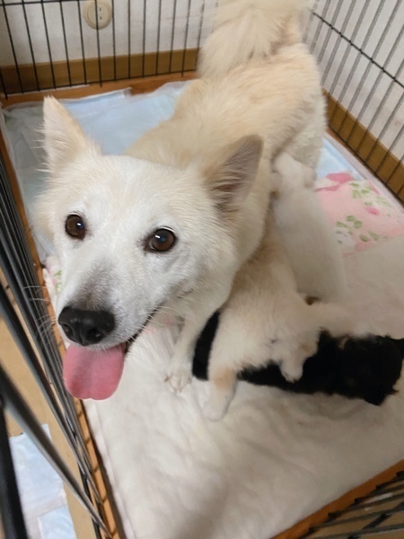 | 特徴(性格など) | 【性格】 誰に対しても人懐っこい子です。 とにかく人が大好き、撫でられるのが大好きで、お腹を出して、撫でて!と催促してきます。 子犬たちより私をみて!と言った感じで、私達の後をひたすら追いかけて来たりと可愛い子です。 そして、ミルクちゃんは人間の目をしっかりとみてくれます。初めて会った時、とてもいい子だなと思いました。 散歩も好きで、リードを持つと尻尾ふりふり、お座りします。散歩中も常に尻尾ふりふり。とても楽しそうです。誰とでも楽しく散歩へ行けます。 食べることも大好きで、人間の食べ物も狙ってきます。食べ物が入った袋を噛んで持っていきます。要注意です。昔は人間の食べ物をもらっていたようです。これからは犬用フードを食べ、健康に気を付けてほしいと思います。 【苦手な事】 ・雷 ミルクちゃんをお世話してくださっていた方からの情報です。 ・爪切り 一度も爪切りをされた事がないので、爪の先まで血がいってしまってるかなと思いましたが、幸い大丈夫で安心しました。一度も爪切りをされた事がないので嫌がりますが、大暴れする事はないので気を付けながら切っています。 ・シャンプー こちらも今まで一度もシャンプーをされた事がないので嫌がっていましたが仕方がありません。でも大暴れする事もなく、シャンプー、ドライヤー出来ました。 ・散歩後の足拭き 嫌がりますが、拭くことはできます。 雷以外は慣れが必要かと思います。 【特徴】 中型犬サイズですが、小さく、抱っこもできます。 【トイレについて】 引き取って1週間経ちますが、シートでトイレはせず、おしっこもウンチも完全外派です。ウンチは必ず庭でも公園でも隅の方でしています。 ⭐︎ミルクちゃんの様子はInstagramにてご確認ください。 (初めて出会った日〜現在の様子を載せています) https://www.instagram.com/hskwannyanrescue |