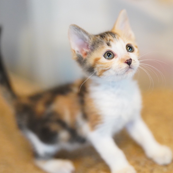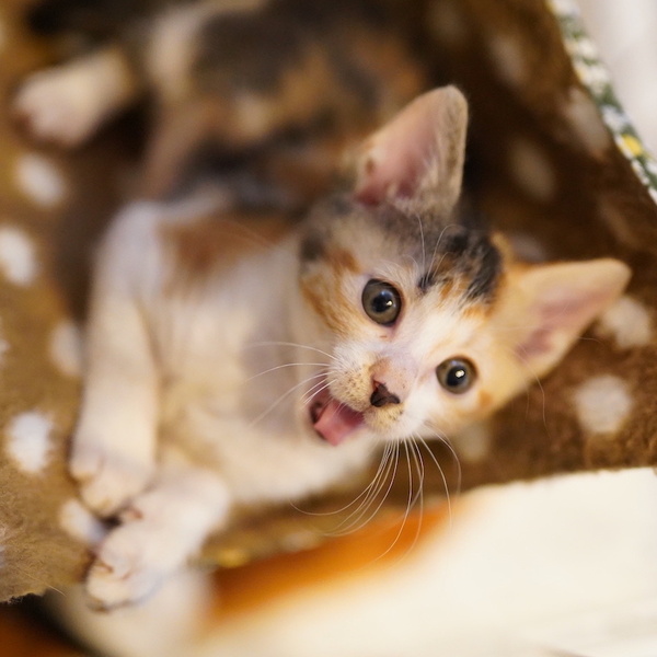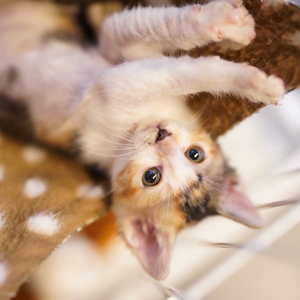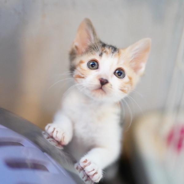 | 特徴(性格など) | よつごの中で一番小柄で、末っ子っぽい女の子です。 甘えん坊で元気いっぱい、兄弟姉妹と毎日走り回っています。 よつごの誰かと一緒か、子猫OKな先住さんのいるお家とご縁があると嬉しいです。 健康管理や脱走対策の他、子猫が安全に暮らせるよう、お部屋が片付いているご家庭とのご縁を希望します。 |