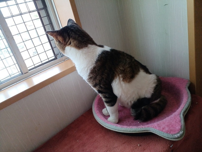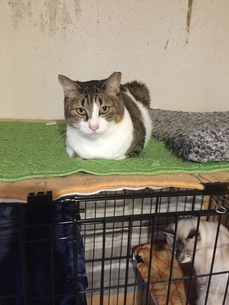 | 特徴(性格など) | キジシロの女の子、キキです。 保護した当初は人がいると巣箱に籠りがちでしたが、今では人がいても自由に過ごしています。 とにかくよく食べる子でご飯の時は近距離まで来てくれます。 猫との相性は良好。まだ少し人を怖がっている面がありますが、毎日一緒に過ごす事で早い段階で懐いてくれると思います。 猫エイズ (―) 白血病 (―) |