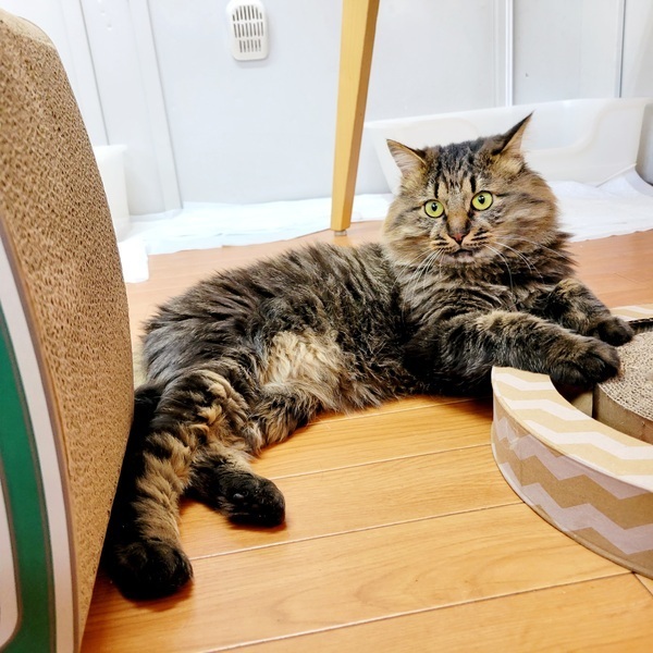 | 特徴(性格など) | もふもふの男の子です。 落ち着いていて のんびりやさんです。 ナデナデが大好きになりました。 初めましての人でもwelcome対応で 威嚇も全くありません。 静かに寄り添います♥️ |