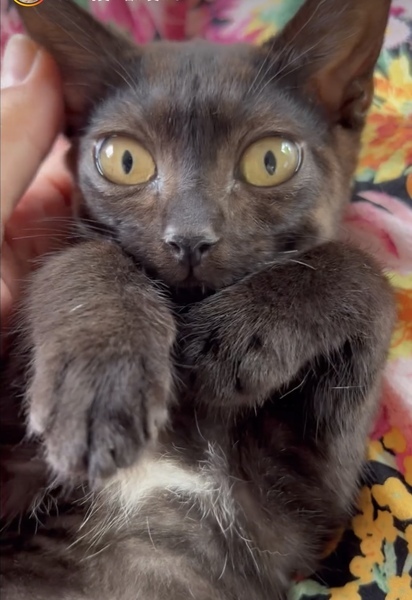 | 特徴(性格など) | ヤマトちゃん(仮) ちょっぴりシャイな女の子 プラックスモークにツキノワ熊のような胸の模様と豚ちゃんのような巻きしっぽがチャームポイント。 トイレもバッチリわかるお利口さんです。 健康状態良好 エイズ白血病陰性 ワクチン2回接種済み ノミダニ駆虫済み |