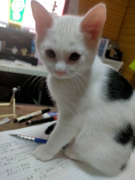| 特徴(性格など) | 正面だけを見ると、白猫ちゃん!背中に肉球にも見える模様あり尻尾は黒です♪ ちょっとやんちゃで食いしん坊な男の子! 人慣れと子供慣れしてます!トイレはちゃんとトイレでできます!猫じゃらしで遊ぶのが大好きです! |