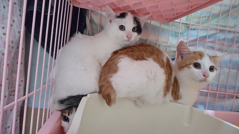 | 特徴(性格など) | 怖がりな性格ですが激しい威嚇はありません 少しずつ慣れてきました 丸顔、真ん丸な目が可愛い女の子です 先住猫さんがいらっしゃらない場合は兄弟一緒に迎えくださる方を希望しています 茶シロは男の子 白黒は女の子です ノミダニ駆除済み 検便済み ワクチン2回接種済み エイズ白血病検査陰性 |