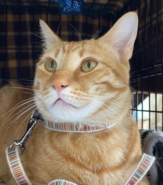 | 特徴(性格など) | ●署長♂ ●2020年1月ごろ生まれ ●猫エイズ 陽性 ●白血病 陰性 ★できること/できないこと ◯だっこ ◯爪切り ◯お留守番 ◯人馴れ ◯1匹飼い △猫付き合い ◯犬付き合い 貫禄十分の茶トラ男子「署長」です! 名前の由来は縁あって放浪時代に出会った人間の署長さんに気に入られ「猫署長候補」に!しかし、そこはさすらいの野良。物語付きで結局保護猫になりました♡ (保護猫になるまでの物語が気になる方はお問い合わせください!) 約1年半前の保護当時は、野良猫らしく顔相の悪さはピカイチでしたが、人と暮らす中で、空白時間を取り戻すかのように甘々ニャンコちゃんに大変身! 放浪時代に出会った人間の署長さん以外は数m内に近寄らせなかったのに、その変貌ぶりには、当時を知る署員さんもビックリ! 基本ビビリ、警戒心は強めです。 預かりさん宅での生活は、最初の一週間タンス裏、次の一週間タンス上、次の一週間ゲージ内と、少しずつ人が触れるようになりました♡ 気長に少しずつ慣らしていく過程も大人猫ならではの楽しみです! 今では「肩乗り猫」、自分から人に飛び乗って楽チン移動(笑) 大きな茶トラオスですが、オモチャ遊びは身軽で俊敏です☺️ ごはんの「お座り」「待て」もできるし、爪切り後ご褒美チュールの歌で後を付いて回る姿もキュート&天才! 人が外出する時には、後を追いかけてくるのでオヤツをあげてダッシュで出かけないといけません...(笑)それでも食べるの止めてまで猛ダッシュで人を追い抜き、ドア前でゴロンの姿にキュン♡としてしまいます。出かけた後、ドア越しに泣く声でまたキュン♡ 猫あるあるの、新しい箱や入れそうな物にはもれなくIN(笑) カーテン、障子、柱に興味無いので家は傷付きません! エイズキャリアですが、普通に生活すれば発症せず天寿を全うできます。 現在は預かりさん宅にて、犬と仲良く同居中! 魅惑のモチモチボディ♡肩乗せOKな「署長」の「ずっとのおうち」を大募集! |