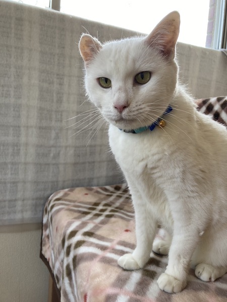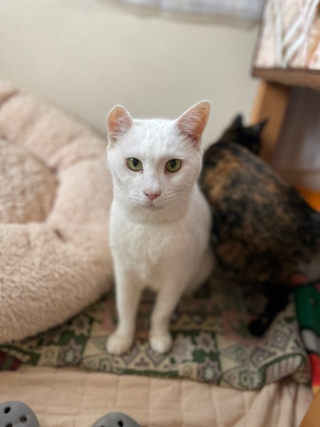 | 特徴(性格など) | クヌート♂13歳です。真っ白な毛並みで目がクリっとしている可愛い男の子です。子猫の時からお家の子として育っていますのでとても人懐っこくスリスリゴロゴロの甘えん坊さんです。人がいないと寂しいのかよく鳴いてます。妹ベンジャミン(サビ猫)13歳ととても仲良しです。ずっと一緒に育ってきた兄妹ですので引き離すのは可哀そうなのでできれば二匹一緒に譲渡したいと思っています。 猫エイズ 陰性 白血病 陰性 |