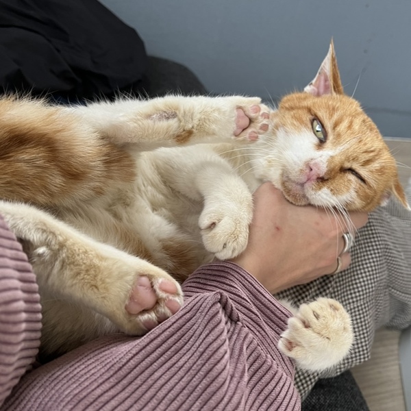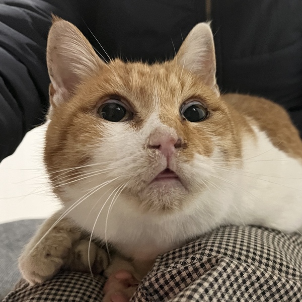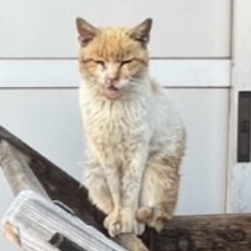 | 特徴(性格など) | 白と薄茶色の二毛猫ちゃんです。 野良猫だった為、年齢不詳です。 歯がほとんどなく、ご飯を食べても骨張っているため、少しお年かなとは思います。 歯が無いため、ご飯を食べるのが苦手で、ウェットフードから手渡しで食べさせる感じでしたが、お皿の工夫で徐々にお皿から食べることができるようになりました。今は、小粒であればドライフードでも食べることが出来ます。歯が無い事により舌がよく出ています。 トイレはしっかり覚えています。 人間の事はとても好きで、家に来た知人でさえスリスリして甘えます。とにかく甘えん坊で、1度膝の上に乗せたら降りません。トイレ時以外基本じっといていて、あまり動きません。(活発な猫ではないです。爪とぎもほぼしません。爪切りや耳掃除、肉球ケア、等はされるがままに大人しくさせてくれます。) |