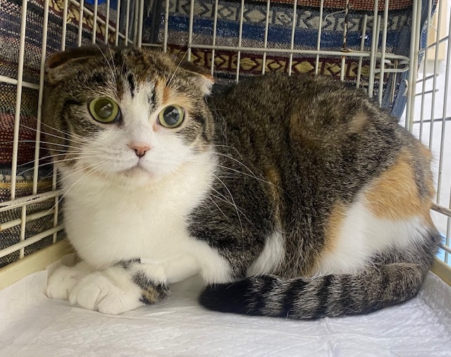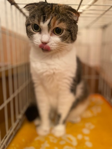 | 特徴(性格など) | 三毛猫でスコティッシュの女の子です。 とてもおとなしい性格です。 |