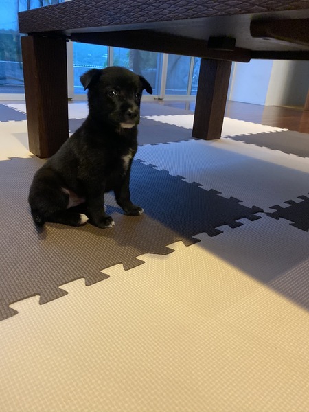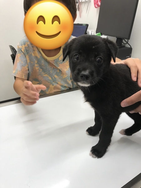 | 特徴(性格など) | 名前は「ちょん」です。全体は黒色で胸に星のような形で白い部分があります。 性格は野良の子なので警戒心が強いですが、飼い主やよく家にくる人には近づくだけで大喜びですぐに懐きます。 「お手」や「お座り」は教えていますが、興奮時には聞かない事もあります。 散歩の時、体は小さいですが力が強いので、体力がある方がいいかと思います。 |