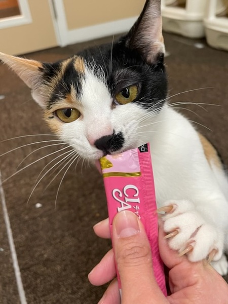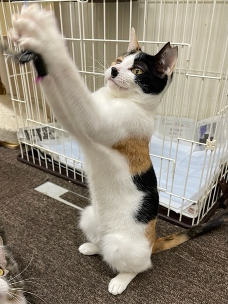 | 特徴(性格など) | 過去のトラウマから人の手がとっても怖くなってしまってましたが、1.2週間ぐらいで慣れてくれ、今ではなでなでの気持ちよさもわかってきてくれたみたいです(^^) チュールとおもちゃがとにかく大好きな運動神経抜群活発ガール! お顔の三毛模様がやっぱりチャームポイント! 元気、食欲、うんち、おしっこ問題ありません。 初期医療済み(以下内容) エイズ白血病検査 陰性 混合ワクチン 済み 内部・外部寄生虫駆除 済み 不妊手術 済み |