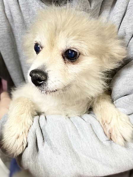 | 特徴(性格など) | すごく陽気な天真爛漫な人なつこい子です。 食欲旺盛です。 元気いっぱいです。 レスキュー受け入れ時 毛をバリカンでザン切りカットされていました。 只今 綺麗に伸びてきています。 毛が伸びると綺麗な クリーム色だと思います。 |