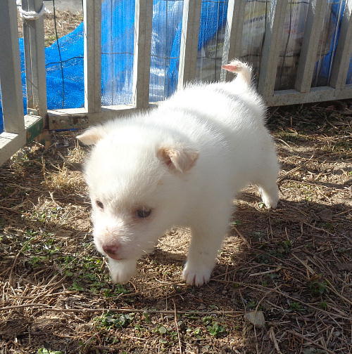 | 特徴(性格など) | 性格:人が大好き、甘えん坊子犬です。仲間の子犬たちと元気に遊び社会性を学習中です。 医療面:健診済み 2種混合ワクチン接種済み ノミダニ予防済み |