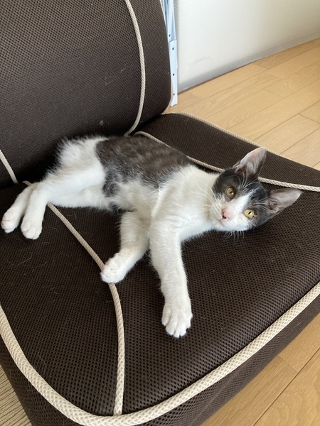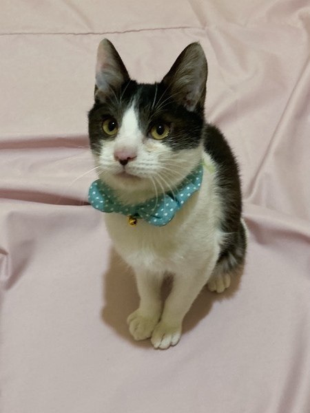 | 特徴(性格など) | 白に濃いグレーで しっぽと手足が長い子です。 とにかく陽気でいつもウニャウニャ言ってます。 楽しい事が大好きです。 人が好きで駆け寄ってきます。 お膝に乗るのが好きな甘えん坊くんです。 活発でオモチャが大好きです。 気に入っているオモチャを投げると 取ってくる賢い子です。 |