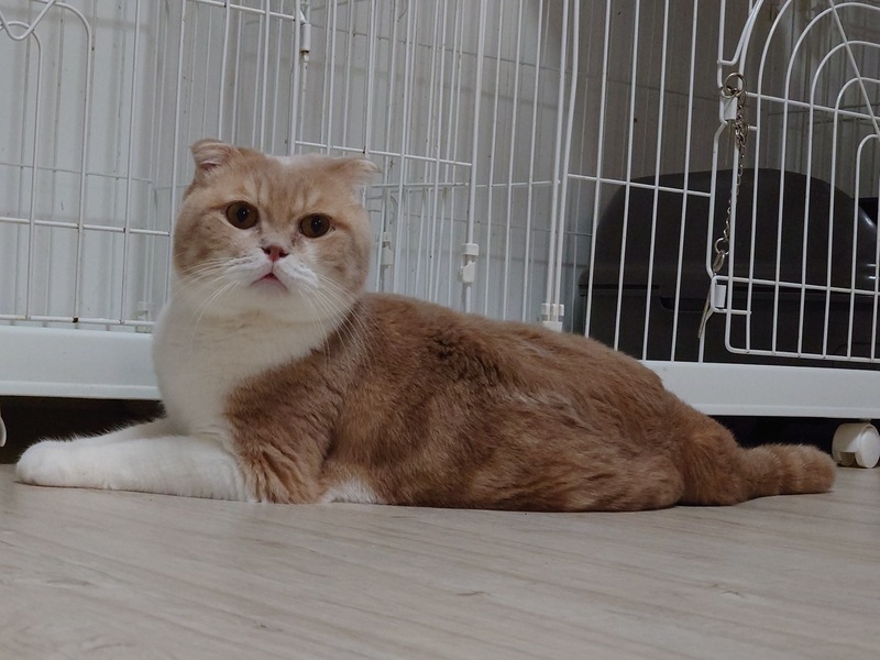 | 特徴(性格など) | 茶白のスコティッシュフォールドです ちょっとビビりの男の子で甘えん坊 触れます 爪切りできます なれるとゴロゴロすりすりです |