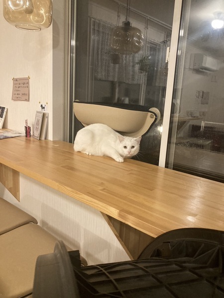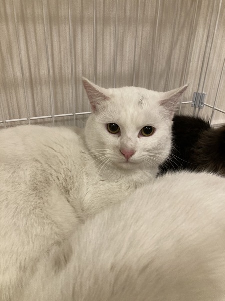 | 特徴(性格など) | 額にちょっぴり黒い毛があるのがチャームポイント。 もっちりとした美形な白猫くん。 大人しくて、優しいです。 |