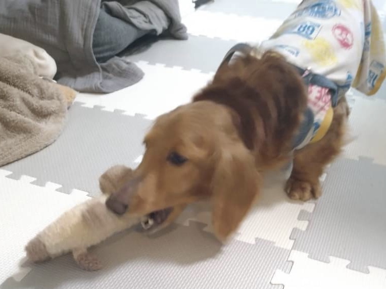 | 特徴(性格など) | ■特徴(仮の名前:セージ) ミニチュアダックス♂ 推定6歳 体重5,2キロ ■性格・暮らし ・人が大好きで、とても甘えん坊でそばにいたい子です ・犬も好きで遊びたがります。接し方は練習中です ・トイレシートの認識はあります ・お散歩は、大好きです ・痩せていて筋力、栄養不足のためマットや絨毯の保護が必要です ■今までに行った医療行為 ・去勢手術 ・フィラリア検査(-) ・血液検査 ・混合ワクチン接種 ・マイクロチップ装着 ・スケーリング ・尿検査 ・皮膚検査 |