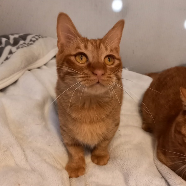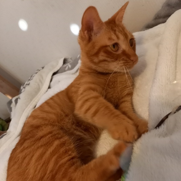 | 特徴(性格など) | 足が短い茶トラの女の子です。(マンチカンミックス?) 保護主が歩くと横を付いて来たり、足元でお腹を見せてゴロンとするのに、まだ触ろうとすると逃げたりします。 最近は座っている保護主の足に乗ってきたりもたれかかったりするようになりました!(そんな時はナデナデ出来ます!) 爪切り、目薬をする時はコツがあり少し大変なので、猫の扱いに馴れている方が良いのではと思います。 短い手足でじゃれたりチョコチョコ歩く姿はとっても可愛いです。 シャイな性格なのでゆっくり信頼関係を築いていってくれ、 脱走防止対策をしていただけるお家希望致します。 参加譲渡会の日程・詳細は以下のリンクをご確認ください。 https://satoya-boshu.net/event/?@button_name@=search&Event_MemberID=1377 |