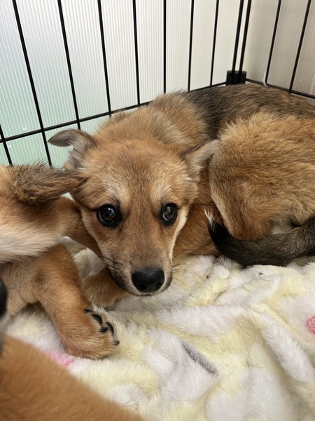 | 特徴(性格など) | ♡まだ生後3ヶ月位弱位、野良ちゃんが生んだ雑種の子犬、とても臆病な可愛い姉妹が家族になってくれる方を待っていますฅ•ﻌ•ฅ ♡No.15839 焦げ茶の女の子 ♡No.15840 茶色の女の子 人と接した経験が無く、撫でられたり触れ合ったり人からの当たり前の愛情、優しさを知らないまま、お腹を空かせて寒いお外で必死に生きてきました。 突然親犬と離れ離れになり連れて来られて収容されどんなに怖くて寂しく心細いか。。 一日も早く温かい家庭の中で過ごさせてあげたいです。 無理もありませんが知らない場所、初めての環境でまだかなり怯えて怖がっています。 優しい職員さん方が大丈夫だよ、幸せになれます様にと毎日触れ合い、声掛けしながら一生懸命にお世話してくださっています(^^) 撫で撫でしてもひたすらジーっと大人しく固まって怯えていて、ただただ怖くてたまらない様子、必死に気配を消している感じでうずくまっています。 抱っこすると恐怖心からお漏らし、脱糞で、必死に逃げたくて放してよと言うように自分を守る為に噛もうとしてしまいます(>_<) 段々と人の目を見てくれるようにはなってきましたが人との関わりや新しい環境に馴れるまではまだ暫く時間を要するかと思われますm(_ _)m ご飯も人前では食べず、ちゅーるも食べようとせず、人が居なくなってから食べている状況です。 栄養不良に不衛生な環境からの保護・収容で、痩せていましたしノミダニがついていました(><) 毛艶も悪く、栄養状態や健康状態がいいとは言えません。 体調も急変しやすいかと思われます(>_<) 何か病気や障害が有るのか、無いのかも分かりません。。 ★今後、体調の急変などもあり得ることを念頭に置き、譲渡後は早急な病院受診が可能なご家庭を希望しておりますm(_ _)m 現在は1日に2回、ご寄付で送って頂いた栄養価の高い良質な仔犬用のドライフード(ネイティブドッグフードパピー)を食べています。 まだまだ幼い為、長時間のお留守番は出来ません。 特に子犬は不安や寂しさで夜鳴きする子も多いです。 ※今後の健康な成長の為に良質なフードを与える事が可能な方。 ※大事な社会化期で、これから甘噛み期やトイレの躾など、何かと手がかかりますが育てる自信と覚悟のある方。 出来ればこのような野犬の飼育経験のある方が望ましいですm(_ _)m ※子犬は思っていた以上にお世話が大変だと言われる方が多く、排泄も頻回で甘噛み期もあります。カミカミされると痛いです! この子達は甘噛み以前に、怖さで噛むので本当にご苦労もかなり多いと思います( ; ; ) 日に日に大きくなっていきますし、換毛期は抜け毛もわんさか、日々のブラッシングも必要です。 本当に!大変ですが( ; ; )充分ご理解頂ける方m(_ _)m ♡まだお散歩デビューは出来ませんが、怯えている事もありますし、今後成長していく中で、急な物音や知らない場所にビックリして怖がって、咄嗟に逃げよう、逃げようとする可能性も大いにあり得ます! その時の力、引きの強さも想定し、急な走り出しや高い塀や壁・柵の飛び越え・急な方向転換や首を振って後退りからの首輪抜け、胴輪抜けにはご用心です! 呼び戻しも教えなければなりませんし、パニックになったワンちゃんには呼び戻しもききません、もし逃がしてしまったらピューっと走って逃げて行ってしまう可能性大です!(>_<) もし逃がしたらもう捕まえられない!!というようにお考えくださいm(_ _)m ※繰り返しになりますがどんな子であっても、慣れてきても、常に、脱走・逃走には充分な注意と最大限の配慮と(二重扉、W首輪、胴輪にWリード)迷子札の装着 をお願いしております。 適切に制御し、躾や毎日朝晩のお散歩、運動の時間をしっかり取ることの出来る、沢山優しく触れ合って頂ける方。 先ずはこの子達が心を開いていけるようじっくりと時間を費やし触れ合い、信頼関係を作っていく事の出来るご家庭を希望しております。 ♡人間が焦らずにゆっくり見守りながら、愛情を持って接ししっかりとお散歩にも連れ出して行けば、この子はきっと徐々に新しい家庭に馴染んでいける、優しい家族に囲まれて思い切り甘えて遊んでほしいのだと思います。 当分の間はかなり手がかかり大変かと思いますがまだ子犬ですし、広い心で、例え長期戦でもドンとこい^_^と仰って頂ける方。 ビビリまくりで殻に閉じこもりの愛くるしいこの姉妹をいつか尻尾フリフリ♫ニコニコの笑顔にしてくださる方、いらっしゃいませんか? どうぞ宜しくお願い申し上げますm(_ _)m ⭐️必ず室内飼育で、譲渡後速やかに病院受診、健康診断、2回目3回目の混合ワクチン、生後4〜6ヶ月頃を目処に避妊手術をする事が可能なご家庭。 ⭐️まだまだ幼い為長時間のお留守番は出来ません。なるべくお留守番の少ない(4時間以内)沢山優しくスキンシップやコミュニケーションで触れ合っていただけるご家庭。 ストレスが溜まらぬよう、成長後の運動量もしっかり確保出来るご家庭m(_ _)m ⭐️トイレ