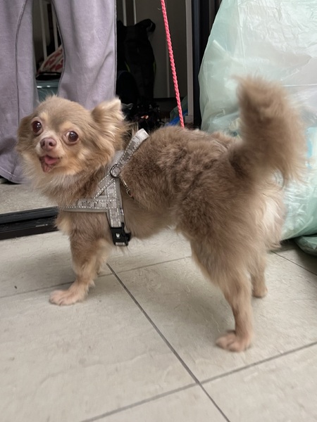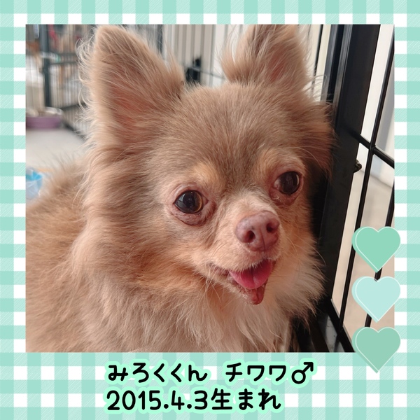 | 特徴(性格など) | 名前 みろく 種類 チワワ 色 イザベラ&タン 年齢 2015/4/3 性別 オス 体重 3.0kg ..................... ワクチン 5種混合接種済 フィラリア 陰性(ー) マイクロチップ 装着済 避妊去勢手術 去勢済 メディカルチェック 聴診触診、血液、検便、異常なし 駆虫薬投与、ノミダニ駆除済 ...................... 大人しくちょっと怖がりですが、お散歩は大好きで張り切って歩きます。 他犬には興味津々で近寄って行きます。 人に対しては、はじめはちょっと警戒しますが、甘えて大丈夫だとわかると、しっぽフリフリ、顔を埋めて甘えます。 ポテポテ歩く姿や寝相がとってもかわいいです。 トイレの失敗もほとんどなく、ブラッシングなどお手入れも嫌がらず、手のかからない子です。 全歯抜けていてありません。その影響から顎が溶けていますが、ご飯はしっかり食べられ、日常生活には全く問題ありません。 日常の様子はInstagramをご覧ください。 https://instagram.com/linkplus_wan.nyan?igshid=YmMyMTA2M2Y= |