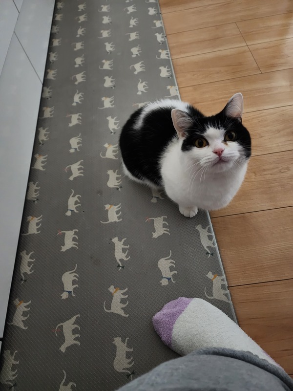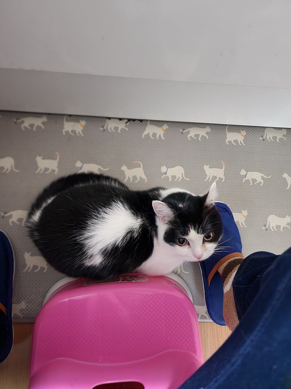 | 特徴(性格など) | 白黒のハチワレです。極短足です。 びびりですが慣れてくれるとスリスリ寄ってきて可愛いです。名前を呼ぶとニャーと返事します。 |