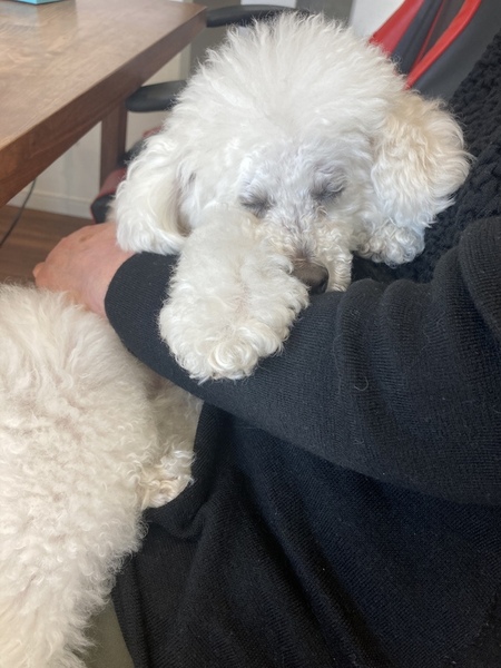 | 特徴(性格など) | ホワイトのトイプードル 元気で人懐こく、賢いので、すぐに覚えます。とても甘え上手で可愛い女の子です。 トイレ:シート、外、どちらでもします ご飯:何でもよく食べます 吠え癖:インターホンの音には敏感に反応します 噛み癖:ほとんどありませんが、ビックリした時などに思わず噛んでしまう事があります 健康状態:服用している薬はありません 肌が少し弱いので、春先に痒みが出る事があります。投薬や、保湿剤で対処お願いします。 |