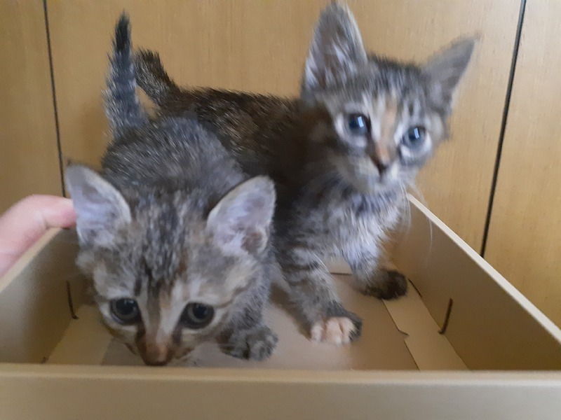 | 特徴(性格など) | 麦わら柄 キジトラにオレンジ色の毛色混じりです。 姉妹ともに人馴れしています。 好奇心旺盛です。 おもちゃにじゃれて遊んでいます。 元気で健康状態良好です。 2回目のワクチンしてから 生後2ヶ月過ぎてからの 譲渡予定です。 |