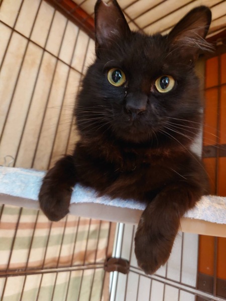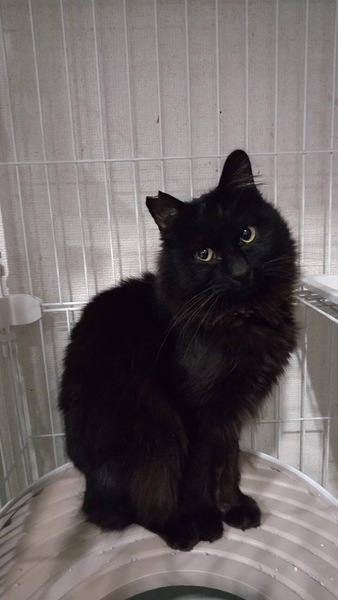 | 特徴(性格など) | クマオ♂推定2歳の長毛黒猫の男の子です。2023年3月に保護致しました。とても懐っこく元気いっぱいです!目がクリっとしていて可愛い声で良く鳴いています。 ずっとのお家を探しています。宜しくお願い致します。 猫エイズ(-) 白血病(-) |