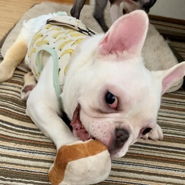| 特徴(性格など) | 【仮名】 テッセン 【犬種】 フレンチブルドッグ 【カラー】 クリーム 【体重】 8.4kg 【性格】 人にも犬にも懐っこくて、後脚の障害を感じさせない朗らかな子です。仔犬にしては落ち着きがあり賢いです。周りをよく観察しています。 【ご飯】 ドライフード、缶詰、手作りなど。 前脚を支えにして、介助なしで上手に食べています。 【お散歩】 まだ行っておりません。 【お留守番】 短時間ですがフリーでしています。 【トイレ】 後脚が不自由なため、オムツを着用しています。便が出し切れないので、肛門周りをマッサージしながら残便を押し出しています。就寝前にするとスッキリするのか、グッスリ眠れるようです。 【その他】 両後脚に先天性の障害があります。 大学病院を受診した結果、筋肉の拘縮が骨や関節の成長の妨げになってしまうという難しい症例でした。 両後脚ともに股関節脱臼、膝蓋骨内方脱臼、足根関節は内方へ曲がっています。 手術では予後予測が立たないという診断のため、今後は車椅子を使った前脚や体幹の強化を行っていく予定です。 ベビー、仔犬の場合、お見合い方法と場所は預かりママとの調整になります。 2023年5月8日に保護。 ネーミングは5月の花シリーズ2023です。 |