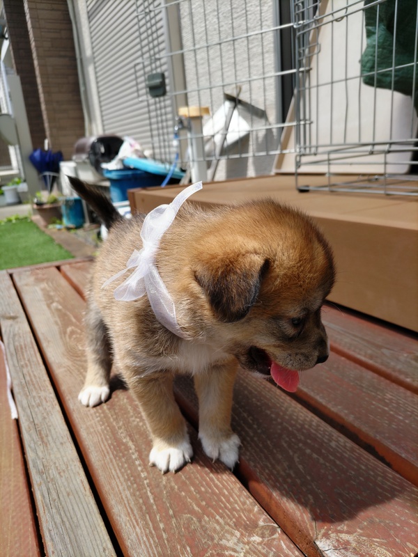 | 里親募集する理由 | 職場に住み着いた野良犬のお母さんが9頭の子犬を生みました。そのうちの1頭です。巣穴から出てきて離乳が始まったので保護して里親を募集しています。気高く野生で生きる野犬のお母さんから生まれた小さな命です。母親から引き離され兄弟姉妹肩寄せ合っています。この子に人と暮らす幸せを教えてあげてください。それができたとき、この子はあなたにこの上ない幸せを運んでくれます。 | ||