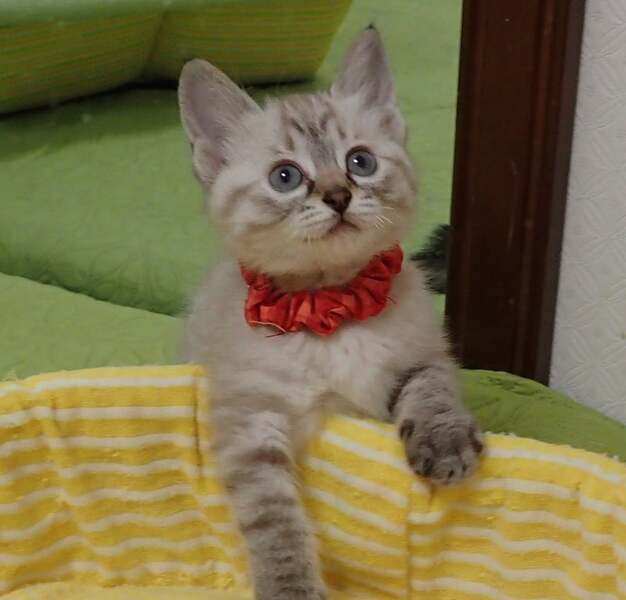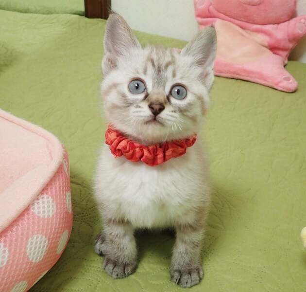 | 里親募集する理由 | 天井裏に仔猫がいると市民から連絡があったそうで、ボランティアさんが赤ちゃん3匹保護してくれました。 飛行機で送れるサイズまで無事育てて貰った後、細やかお手伝い、里親さま探しを引き受けました。 |
