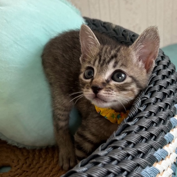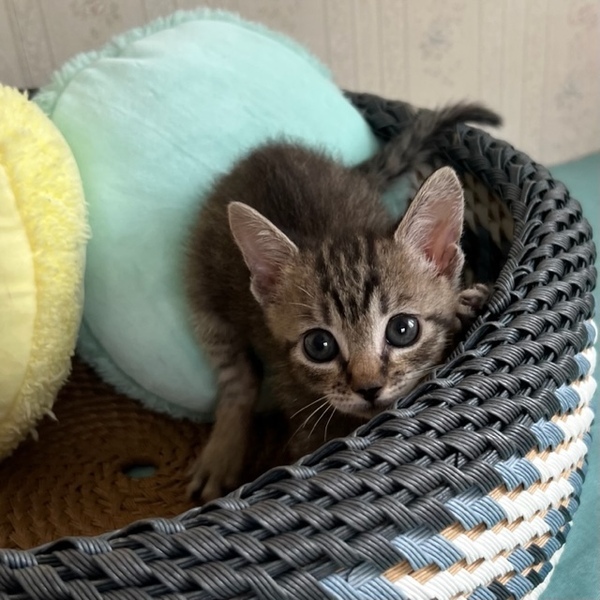 | 特徴(性格など) | 首輪を付けていないとわからないくらいマレリちゃんとそっくりなラブリー男子です。性格はまだわからないのですが、ぴょこぴょこ走って遊ぶ姿はたまらない可愛さ♡160グラム弱の保護でしたがスクスク育って健康状態も食欲もバッチリなので、少し小さめですが参加することにしました。お届けは体調が安定する体重が1kgくらいになってからになります。兄妹の誰かと一緒のお迎えも大歓迎です! 健康管理をしっかりしてくださる方、また安全に暮らせる様にお部屋のお片付け、目に見える形での脱走防止対策を徹底してくださる方希望です。脱走防止対策についてはご自宅の玄関・開ける窓・ケージを置くお部屋などのお写真をご持参いただくとスムーズにお話ができるかと思います。 |