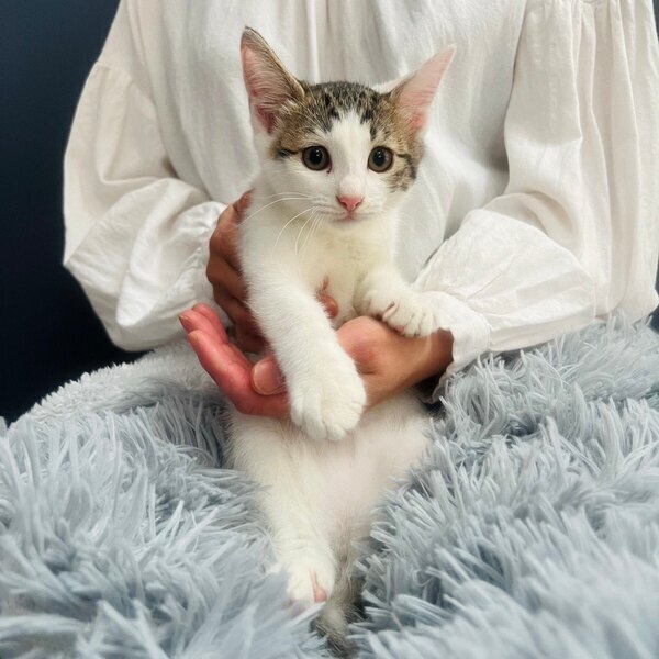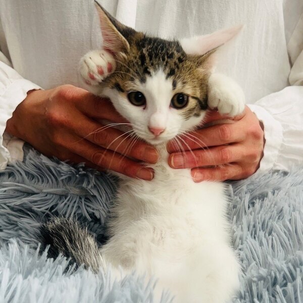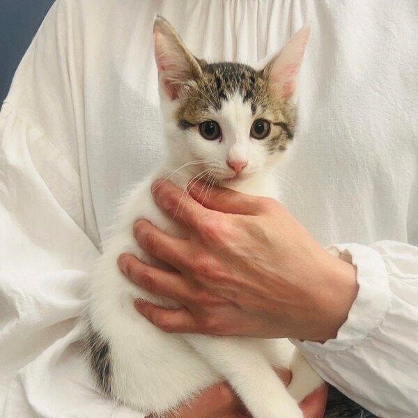 | 特徴(性格など) | 仮名:まる 白色が多めのキジ白君。 兄弟(ぎん、ちゃちゃ)同様に、とても人懐っこいです。 遊ぶの大好き陽気な男子です♡ 健康状態 良好 体重 1.35kg(6/21測定) マイクロチップ装着済 今後の医療措置 なし |
