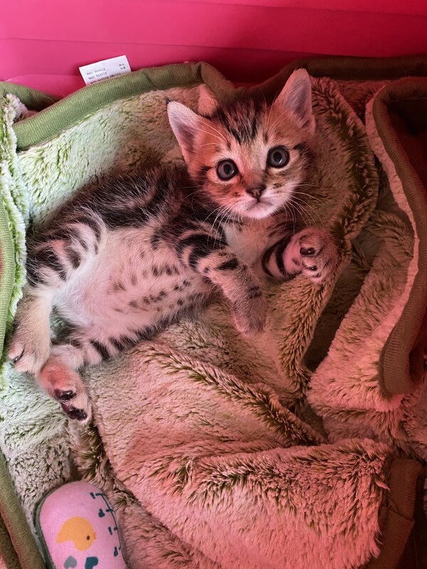 | 特徴(性格など) | 幼名:竹千代 男の子 クラッシックタビー(渦巻き模様)と短いしっぽが可愛い子猫 一緒に捨てられていた兄妹は死んでいた為、 ひとりっことして甘やかして育てています。 まだ子供なので食事は1日4回程。 小さいうちはお留守番はあまりできません。 充分な脱走対策(柵やドア)をお願いします。 |