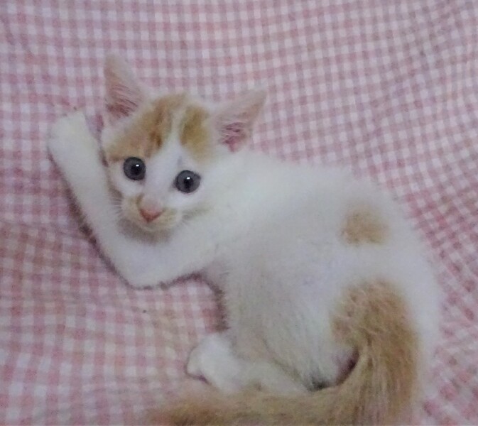 | 特徴(性格など) | 仮名: 穂高(ほたか)くん、オス 毛色: ほとんど白の白茶、尻尾長い 性格: 人には馴れていて怖がりませんが、少しビビリのところもあり、大きなじゃらしやカメラが怖いようです。 兄弟のつるぎくんとは仲良しでいつも一緒に遊んでいます。 兄弟一緒の縁があると良いですが、模様が似ていて区別しずらいので、別々でも構いません。 爪切りや薬は大丈夫です。 ご飯もきちんと食べますが、小食ですから、まだ太れないようです。 元気に遊びますが、大声で鳴いたりすることもなく、大人しい方です。 子猫ですから、お届けは車で1時間圏内でお願いします。 検便済 駆虫済 のみとり済 3種混合ワクチン済 猫エイズ・白血病ウィルス検査はともに陰性 |