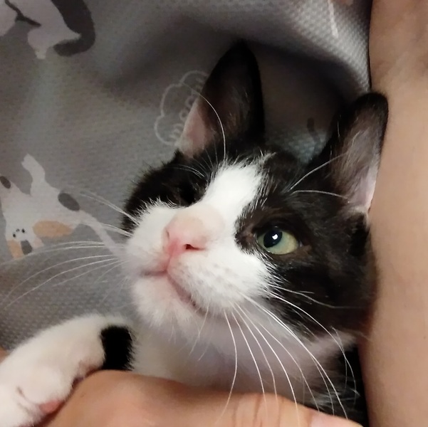 | 里親募集する理由 | 知り合いのお庭で仔猫が産まれてしまったと相談を受け、兄弟たちが風邪をひいていてかわいそうに思い、一緒に保護しました。 眼に障害がありますが生活に支障はなく元気いっぱいです。 |