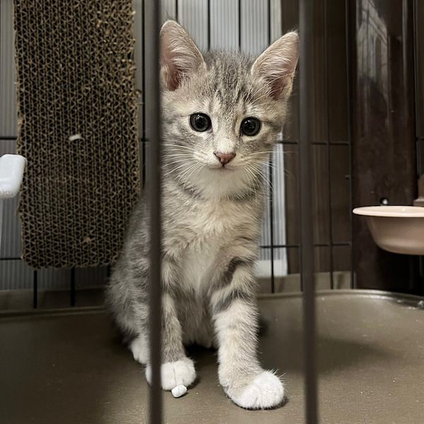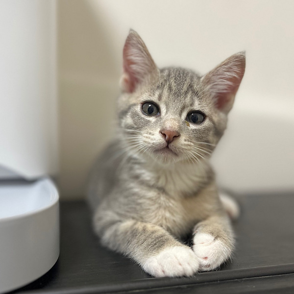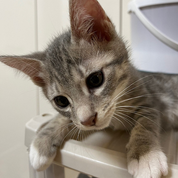 | 特徴(性格など) | パステルのキジ柄に靴下を履いた男の子。グレーの様な珍しい色をしています。どう撮っても様になるイケニャンです。 人間大好きですぐに近寄って来てはゴロゴロ喉を鳴らす甘えん坊です。5きょうだいの中で喧嘩は弱め。体も小さめですが、食欲は旺盛です。 ナデナデも遊びも大好きで、遊び過ぎて疲れると自分からお気に入りのハンモックに入って眠ります。 お留守番があるご家庭は朝夜にしっかり遊んであげて下さい。 |