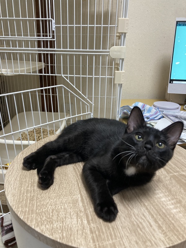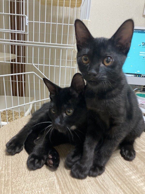 | 特徴(性格など) | 全体真っ黒ですか、うっすらシマ柄があります。 2匹ともアゴは、ワンポイント白い部分があり、1匹は髭も白く珍しいです。 |