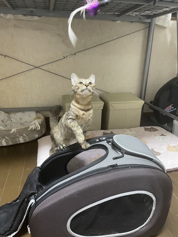 | 特徴(性格など) | 慎重な性格ですが、猫じゃらしやおもちゃで遊ぶのが大好きなムギキジの女の子です。 鍵しっぽとおひげもキジ模様なところもチャームポイントです! |