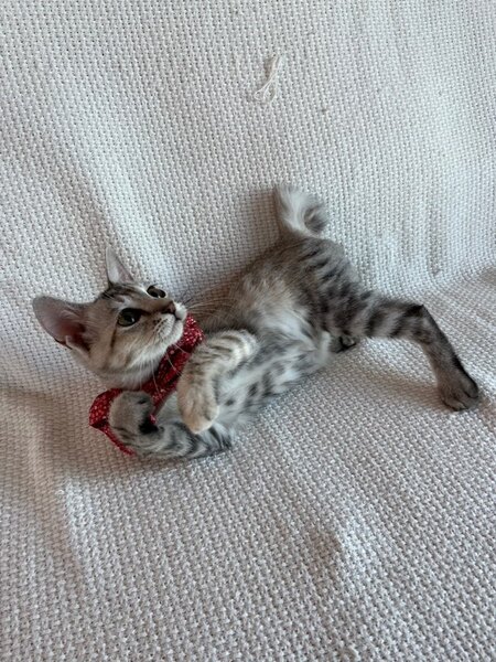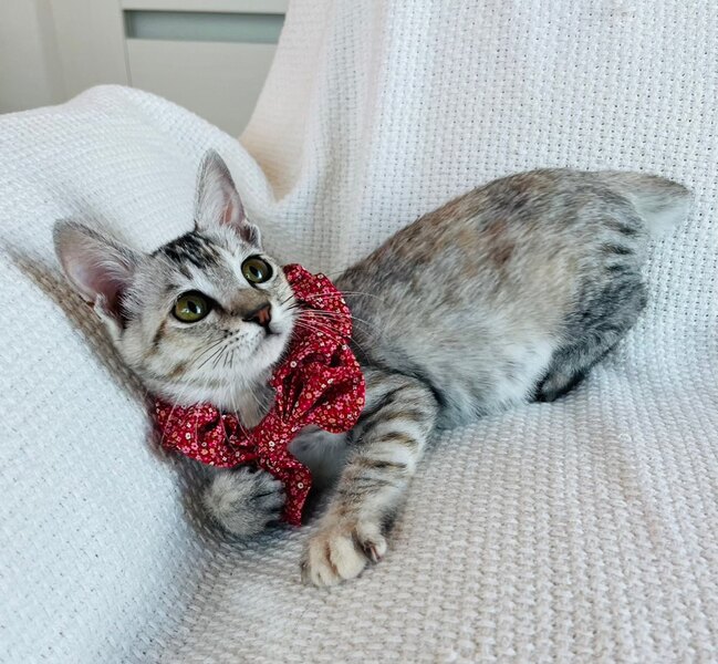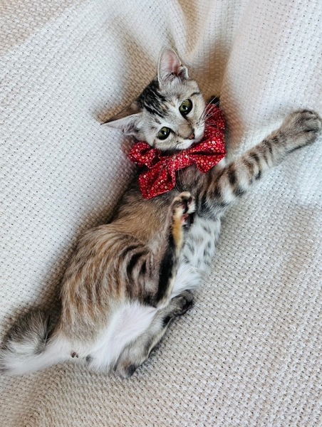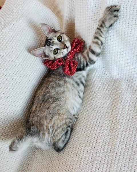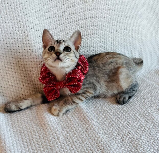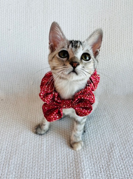 | 特徴(性格など) | 仮名:静(しずか) 人が大好きで、帰宅すると一番に出迎えてくれます。 キャットタワーの上で日向ぼっこが日課です♡ 健康状態 体重 1.15kg(8/22) ウイルス検査は未実施ですが、母猫は検査済、陰性でした。 保護当初はノミ・ダニ、耳ダニ、お腹の虫があって、痩せていました。 8/5にレボリューション塗布、コンベニア(抗生剤)注射。 8/13ドロンタール(駆虫薬)投与。 8/222回目のレボリューション塗布。 今後の医療措置 避妊手術 |