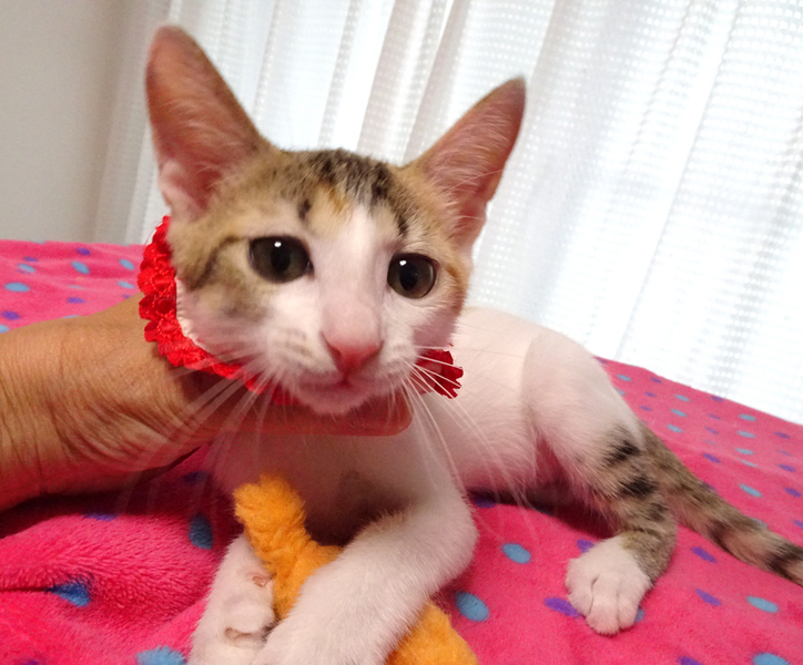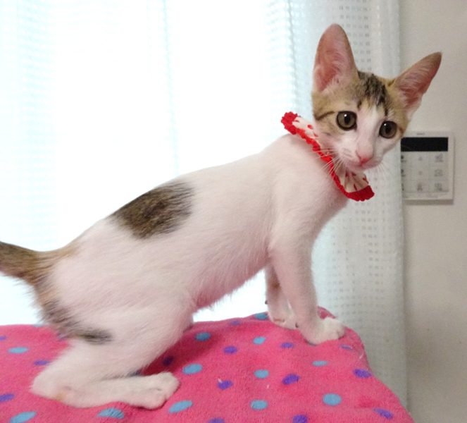 | 特徴(性格など) | 【猫の仮名】 ちぃちゃん (担当 松嶋) 【毛色・柄】 白三毛、長いシッポ 【動 画】https://youtu.be/SzWDHiDMXMI 乳飲み子から育てたので大変人慣れしています♪ 猫を飼うのが初めての方でも大丈夫です♪ 健康状態良好 ●ウイルス検査(エイズ・白血病)陰性 ●ワクチン 2回 ●蚤取り 1回 ●駆虫 2回 ●検便 2回 ●シャンプー 2回 走っても大丈夫なペット可のお住まいで、家族の一員として生涯大切にして下さるご家族を募集しています。 まだ小さいので猫だけのお留守番が長時間でないご家族を希望します。 お一人暮らしの方の方は女性に限らせていただきます。 ご高齢の方は後継者のおられる方を希望いたします。 |