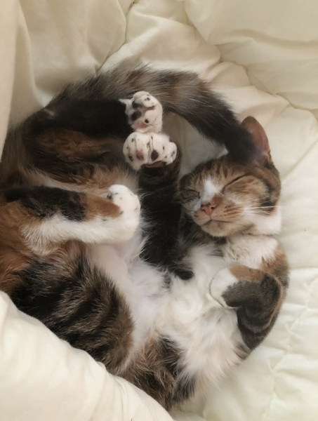 | 特徴(性格など) | 三毛ですがあまり見ないお洒落な柄です。 毛並みが艶やかでとても柔らかい毛質で、お腹はとてもふわふわです! 性格は賢くトイレ失敗した事もなく、上品なお行儀のいい子です。三毛はツンデレと聞きますがデレデレの甘えん坊さんです! 訓練したので子供にも慣れており、人に攻撃した事もありません。噛み癖も無く、壁に引っ掻いたりもしません。ゲージも慣れております。ご飯中触っても大丈夫です◯ 遊びは100均のゴムが大好きで、投げると咥えて戻ってきます(*^^*) 可愛がってくれる方に心を開くのはとても早いです! |
