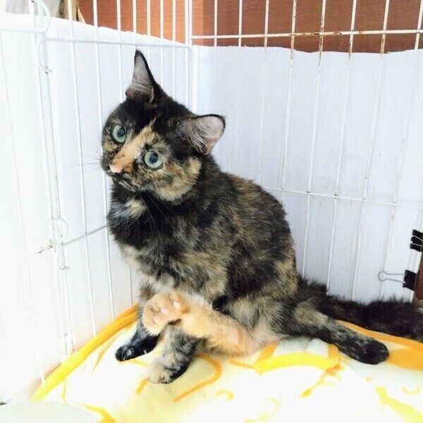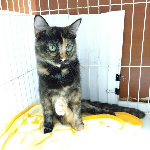 | 特徴(性格など) | ◆パピモッチちゃん 人馴れしてきたハンデっ子ちゃん ○沖縄県内にて保護されました。 ○推定1歳以上(2023年9月時点)のサビの女の子です。 ○しっぽはまっすぐです。 ○尿管縫合、左腎臓摘出手術を行っています。 ○臆病な子ですが、徐々に今の環境にも慣れてきて触らせてくれるようになりました。 ○後ろ脚が不自由ですが、トイレも自分で出来ますし自由に動けます。ただトイレの淵などに脚が引っかかったりしやすいので、引っかからないよう生活環境にご配慮頂けると幸いです。 ○おもちゃでも遊びます。 ★ワクチン接種済み。不妊手術済み。 ★猫エイズ、猫白血病ともに陰性。 ★尿管縫合、左腎臓摘出手術を行っています。 ★後ろ脚が不自由ですが、自由に動けます。 ☆単身のかたはご相談ください。 ○YouTubeにも動画をあげています。こちらもご覧下さい。 「パピモッチ」 https://youtube.com/shorts/RHE4jdjXpDc?feature=share ○HGA48犬猫ニュースチャンネルにて、オンライン譲渡会を開催しました。パピモッチちゃんを紹介しておりますので、ぜひこちらもご覧下さい(開始1時間12分頃〜)。 https://www.youtube.com/live/YJDk8zS82Hk?si=68rjEYlxMcebzCOK ★★お見合いを設定することも可能です。まずはお申込みください★★ |