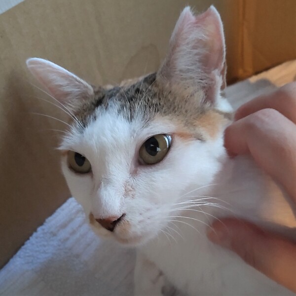 | 特徴(性格など) | 仮名:いちごみるく 毛色:白三毛 瞳の色:茶色 尻尾:短い曲がり尻尾 体重:3.6kg(9月14日現在) 性格・特徴:マッシュルームカットの前髪のような柄が独特ないちごみるくちゃん。 逆三角形の小顔に大きなアーモンド型のお目目がとても印象的な美しい子です。 ねこ窓ハウスに来てまだ間もないため緊張が抜けないようで、保護部屋に行くと身構えて1回だけシャーが出てしまいます。 が、触ると安心してスリスリしてくれます。 ケージの扉を開けてフリーにしていますが、出て来るまでに3日もかかりました。 その後も、見守りカメラで見るとケージから出て遊んでいても、人が行くとまたケージの中に戻ってしまいます。 さらに、子猫のあずきみるくちゃんがケージの外で遊んでいても、少し大きな音がするとすぐに鳴いて呼び戻そうとする、極めて慎重派で心配性ないちごみるくちゃんです。 早く安心して過ごせるおうちを見つけてあげたいと願っています。 他の猫に対しては、相手に威嚇されてもまったく動じずに耐えています。 そのうち相手が威嚇をやめて仲良くなっていきます。 自分から手を出すことも一切ありません。 先住猫さんがいるお宅でもまったく問題ないと思います。 猫に対してとても社交的なので複数飼いをおすすめします。 ぜひ一緒に保護されている子とペアでお迎えください。 健康状態:快食快便の健康優良児です。 保護から2カ月後の検査で猫白血病、猫免疫不全ウイルスともに陰性。 ノミ・ダニ・お腹の虫の駆除1回済み。 お腹の虫はしつこいので、保護後3カ月は毎月駆虫薬を付けます。 それ以前に譲渡の場合は駆虫薬をお渡ししますので、里親様にてお付けください。 |