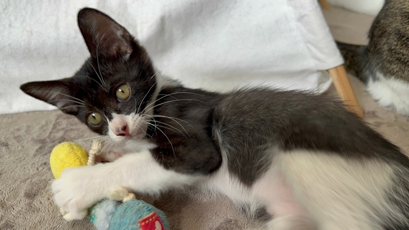 | 特徴(性格など) | 仮名 み空 黒白 女の子 とにかく元気いっぱいです。 他の成猫にも全く動じず同じ月齢の子と遊んでいます。 |