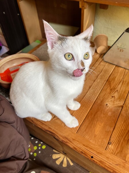 | 特徴(性格など) | 人懐っこいぶち猫のブンちゃんです。 名前を呼ぶと必ず来てくれるとっても賢い子で、妹思いの優しいお兄ちゃんです。 また、元気いっぱいで走り回ります笑。 |
